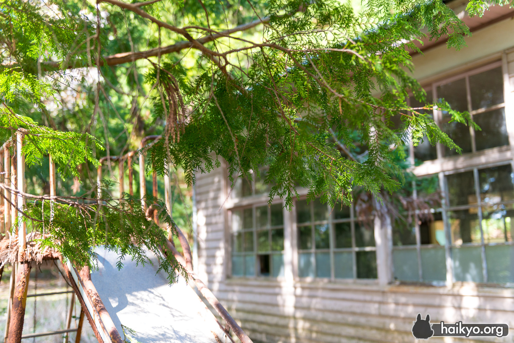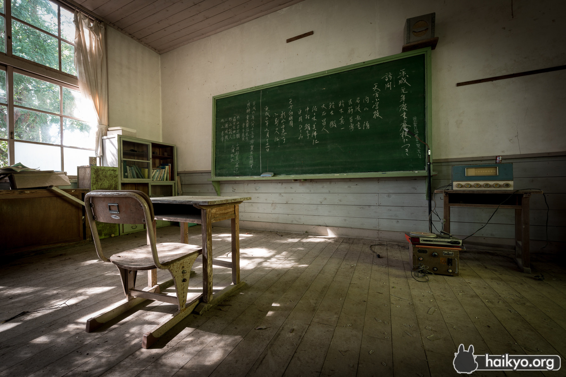 その学校はそんなに朽ちていない。学校として簡単に再生させることができそうなくらいなんだ。すべてがまだそこに残っており、一日か二日間くらいかけて綺麗に掃除してすべてをきちんと片付けたら元の学校として使えるだろうな。そういうの見てみたいものだ:) 校庭には神社と桜の木さえも残ってる。それ以上のものは求めないよ。