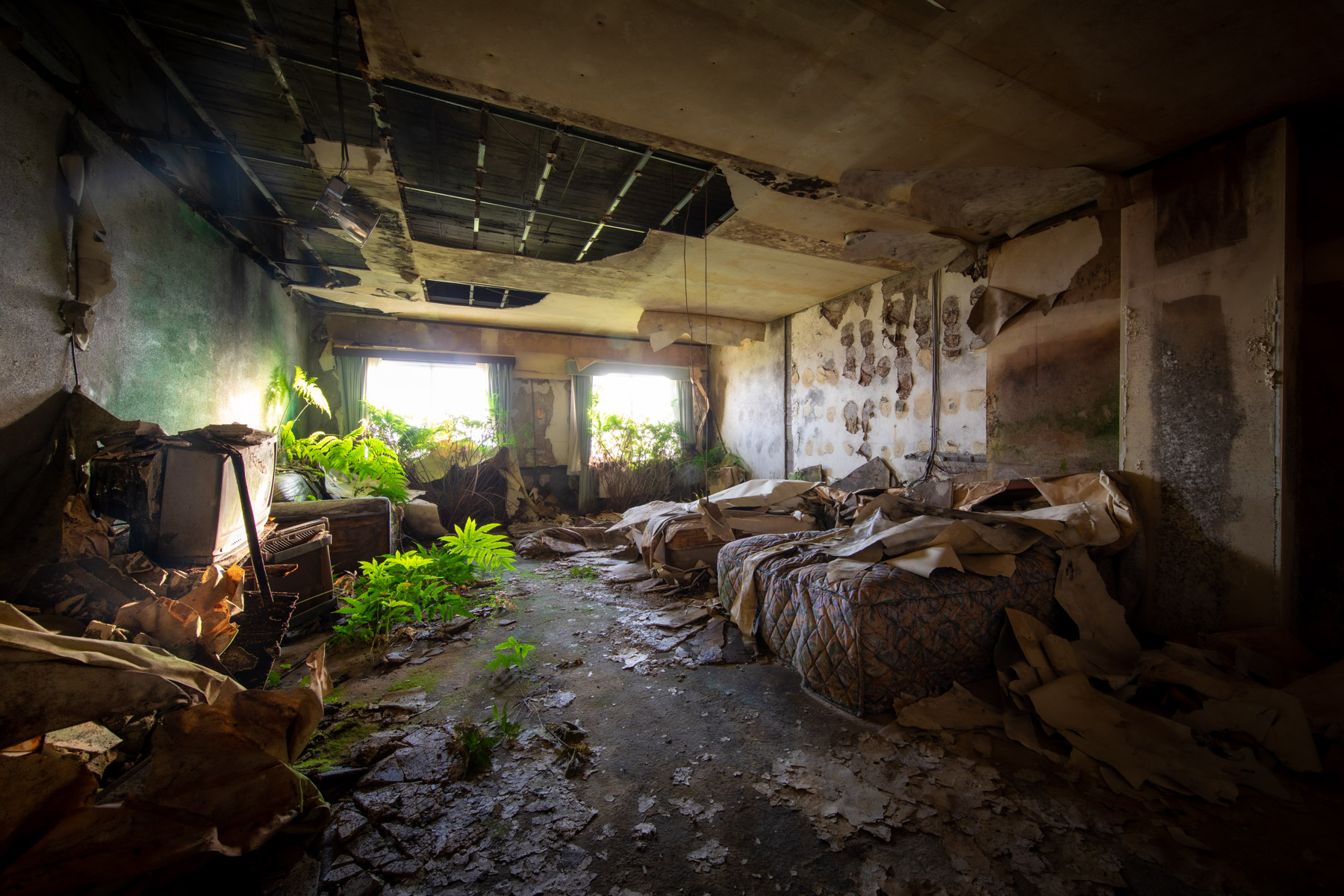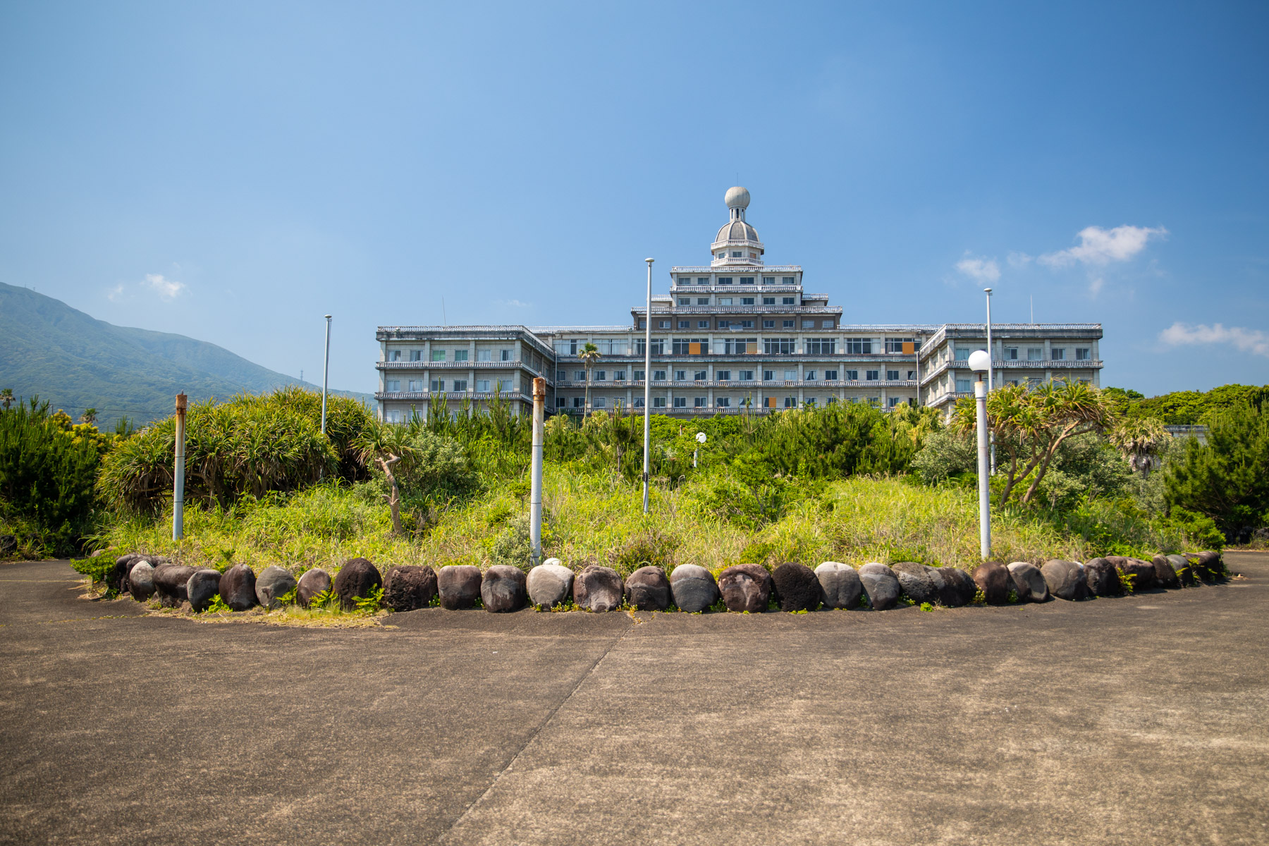 この廃墟を訪れると、外国人や地元の人が探索している姿を見かけるかもしれません。それほど人気の場所で、八丈島を有名にしたと言われています。1963年に建てられたこのホテルは、新婚旅行で訪れる人々を迎え、当時日本で最も豪華なホテルでした。しかし時が経つにつれて、グアムやタイなど海外の島への旅行が手頃になると、このホテルは輝きを失い、何度か名前を変えながら営業を続けましたが、最終的には2006年に廃業し廃墟となりました。